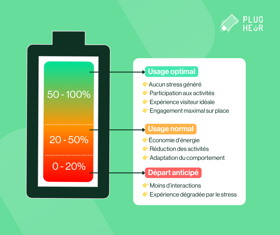 Contrairement à tout problème visible dans un lieu (absence de toilettes, temps d’attente trop long,...), la batterie faible ne génère aucun signal visible direct.